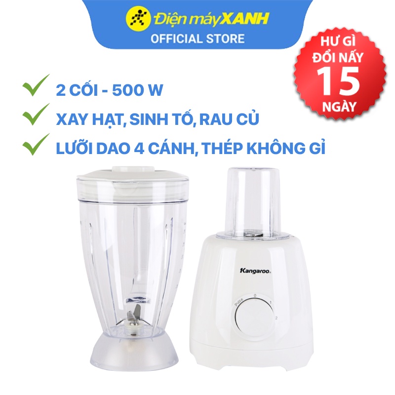 - Máy xay sinh tố Kangaroo KG2B7 có công suất 500w, cho phép xay thực phẩm nhanh, tiết kiệm tối đa thời gian